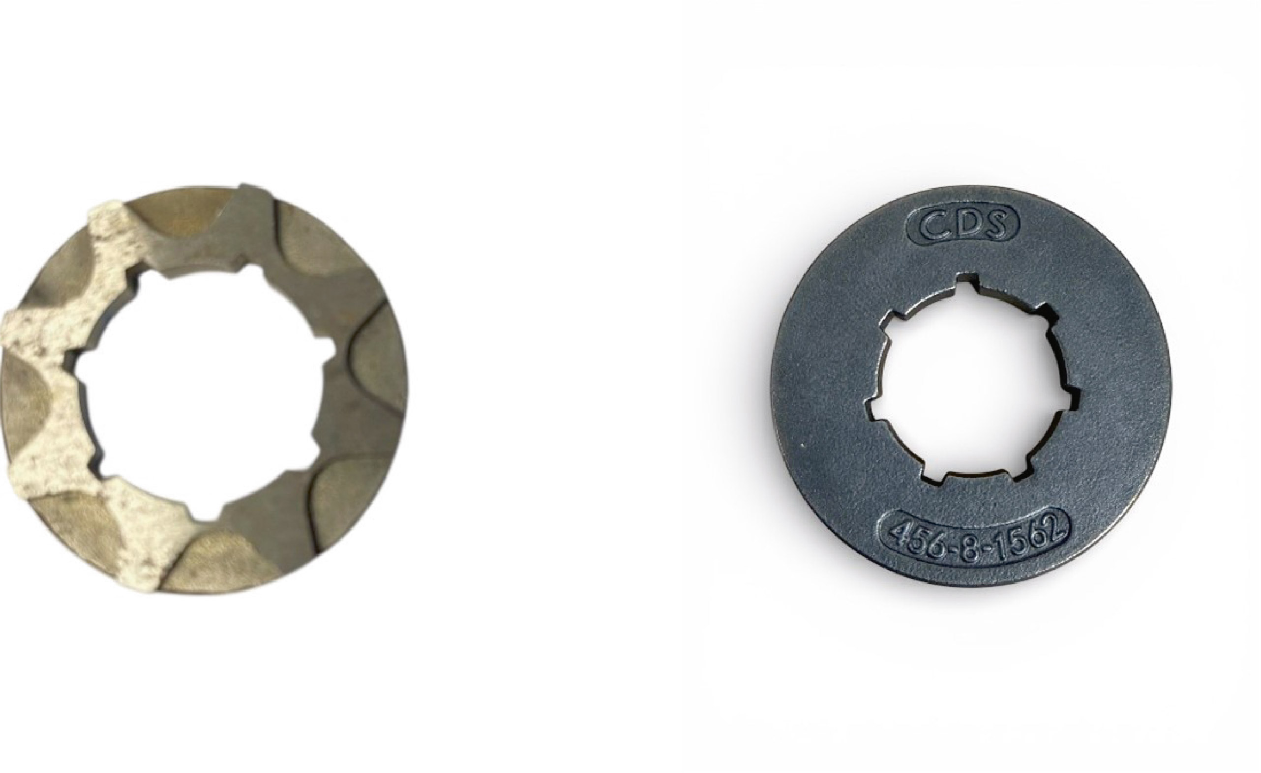 Sectional view showing the inside of a new sprocket: the drive links ride inside the grooves