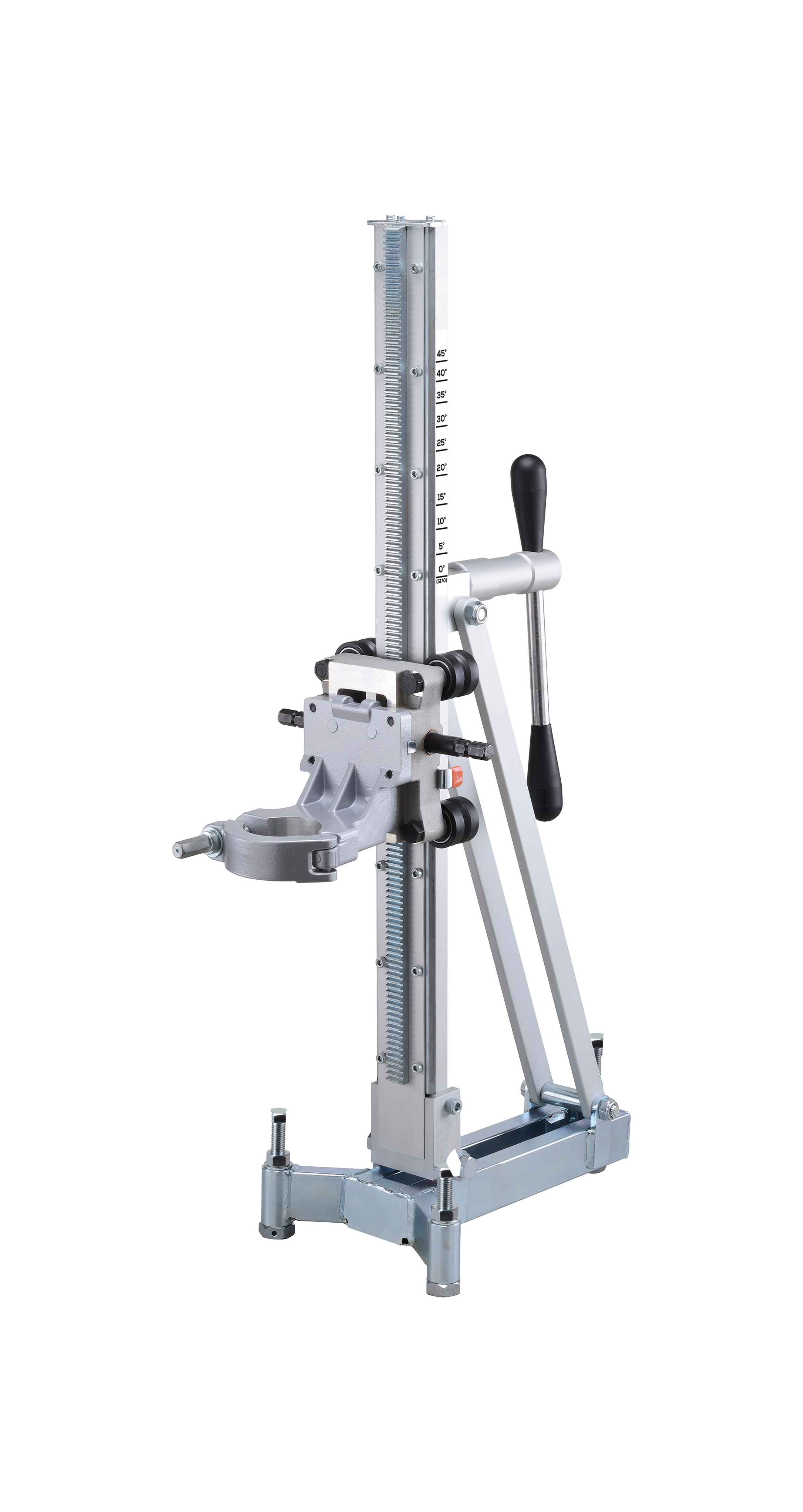 A high-stability drill stand for hand-held drilling motors. Drilling capacity up to Ø170 mm.