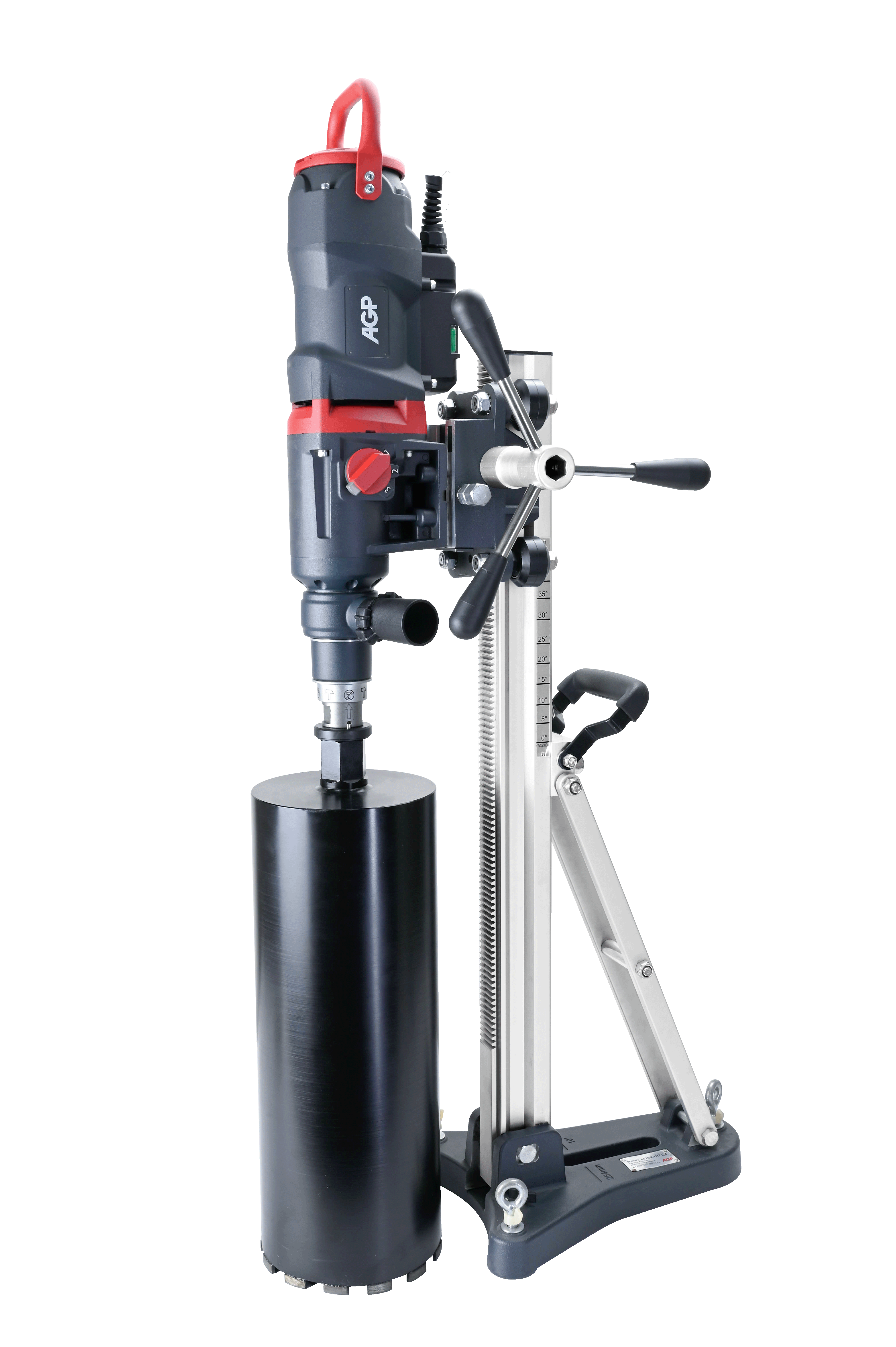 A heavy-duty 3-speed 2500 W combined dry and wet drilling motor for drilling up to 250 mm dry or wet in reinforced concrete. Its soft percussion function enhances both dry and wet drilling. Its convertible port allows vaccuum connection for dry drilling, and water feed for wet drilling, allowing the motor to keep its wet drilling capabilities, while adding the capability to drill reinforced concrete dry. Wide speed range allows outstanding performance with small and medium diameters.